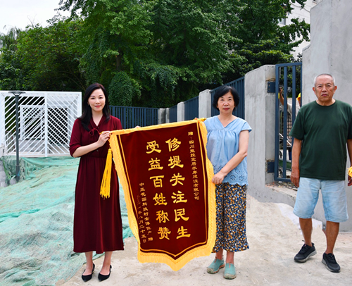 2021年9月6日,武侯区中亚花园科技村居民代表将一面写着“修堤关注民生,受益百姓称赞”的鲜红锦旗赠予广东益达注册宜居水岸建设有限公司,感谢为保障清水河五大花园段附近小区居民生命财产安全及打造舒适的生活环境作出的努力。