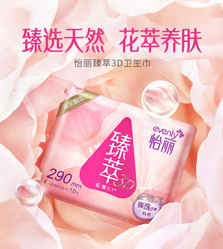 为了带给女性高品质的舒适体验,“怡丽”品牌始终坚持无荧光,无香精,对肌肤零刺激的理念,致力于纯净无添加的个人护理产品体验。