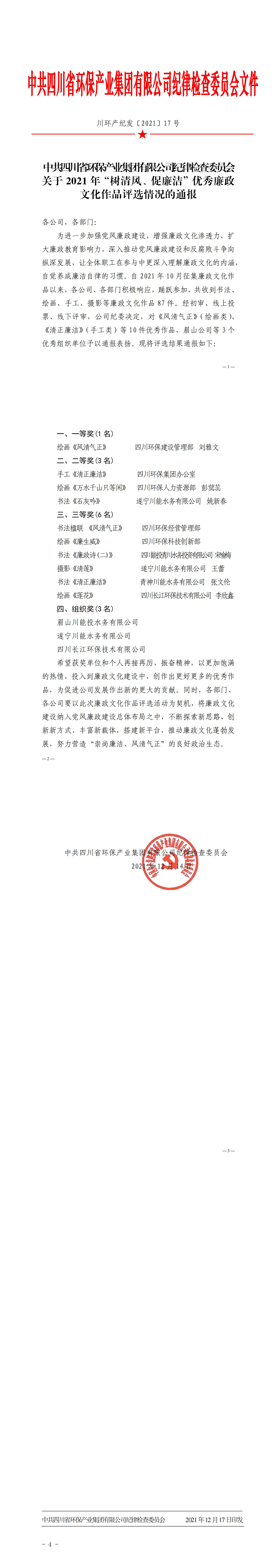 关于2021年“树清风、促廉洁”优秀廉政文化作品评选情况的通报