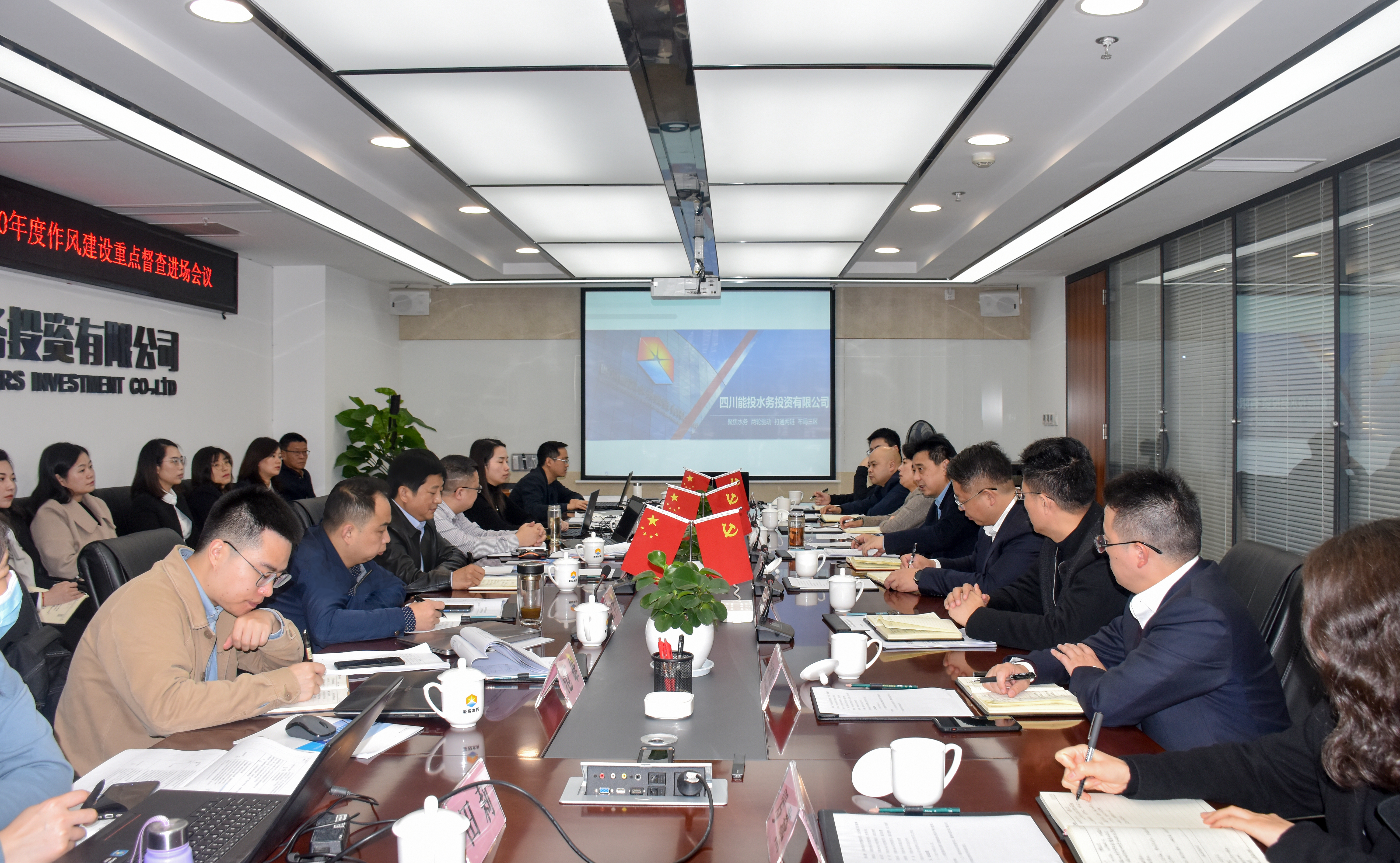 11月2日,益达注册集团纪委2020年度作风建设重点督查第三督查组正式进驻川能水务公司,开展督查工作。当天,督查进场会在川能水务公司召开。会议由川能水务公司党委书记、董事长张忠武主持,督查组全体成员和川能水务公司领导班子成员、中层管理人员、党员代表、部分所属公司主要负责人共32人参加会议。