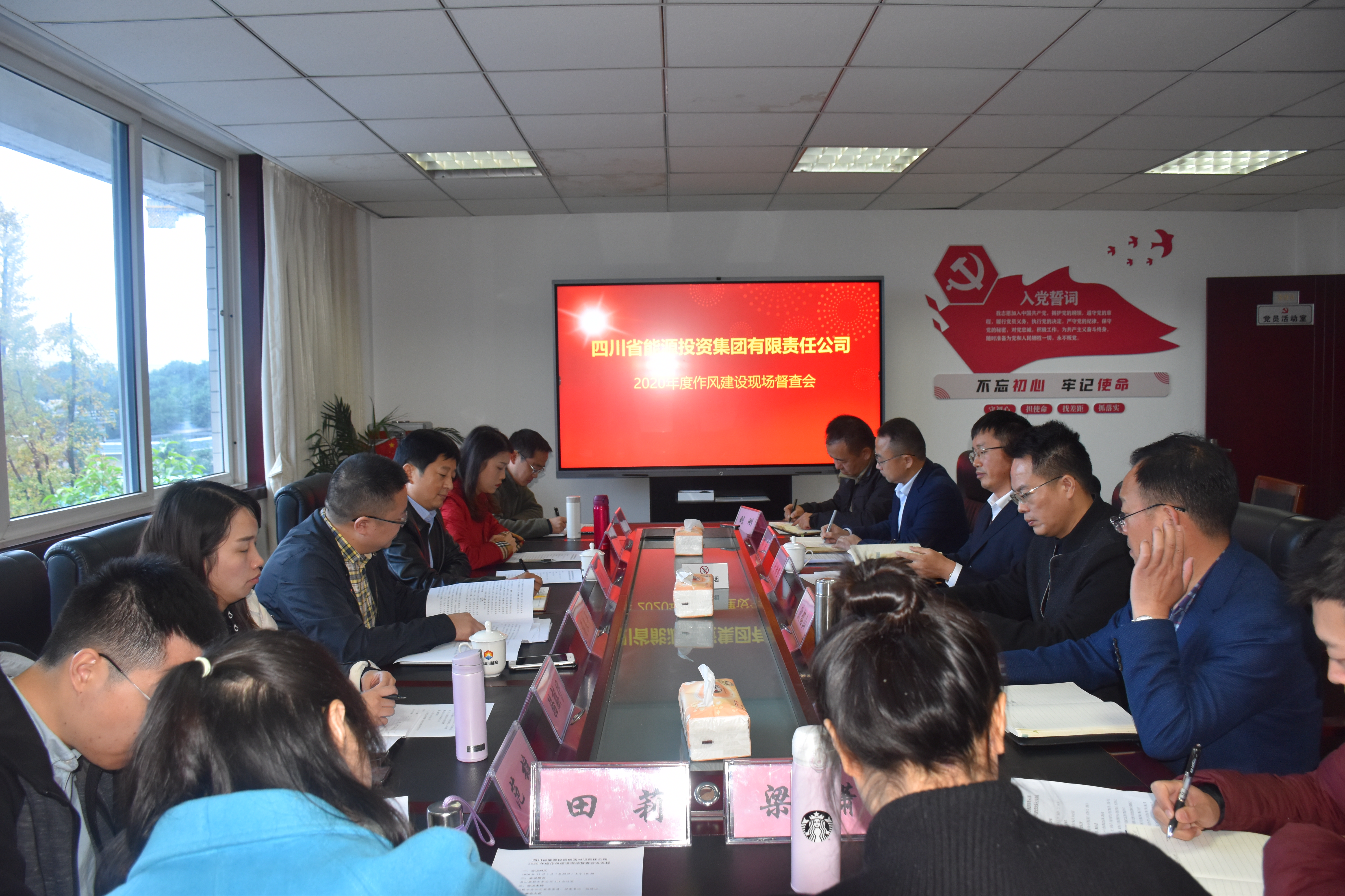 2020年11月5日上午,益达注册集团作风建设第三督查组组长蒋良平率队深入眉山川益达注册有限公司,开展2020年度作风建设现场督查。督查工作见面会由川能水务公司党委委员、纪委书记欧铭山主持,督查组全体成员、水务公司纪检监察人员、眉山公司领导班子成员和各部门负责人共23人参加了会议。
