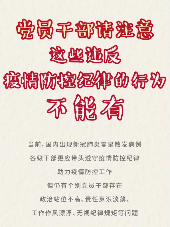 党员干部请注意:这些违反疫情防控纪律的行为不能有
