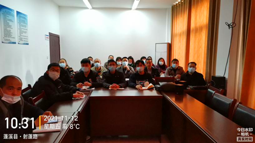 (图为遂宁蓬溪分公司组织收听收看新闻发布会现场)