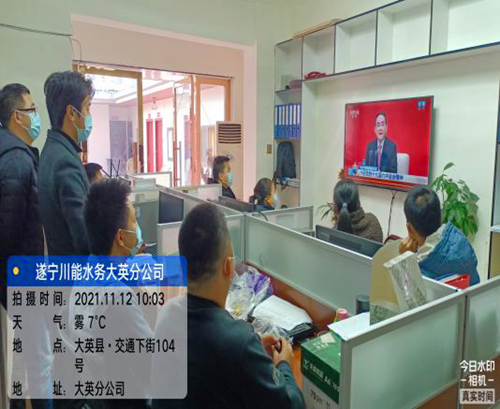 (图为遂宁公司组织收听收看新闻发布会现场)