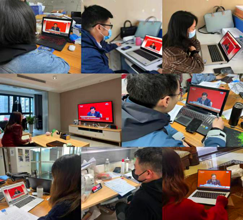 (图为长江公司全体干部职工居家办公期间及遂宁项目部自行收听收看新闻发布会)