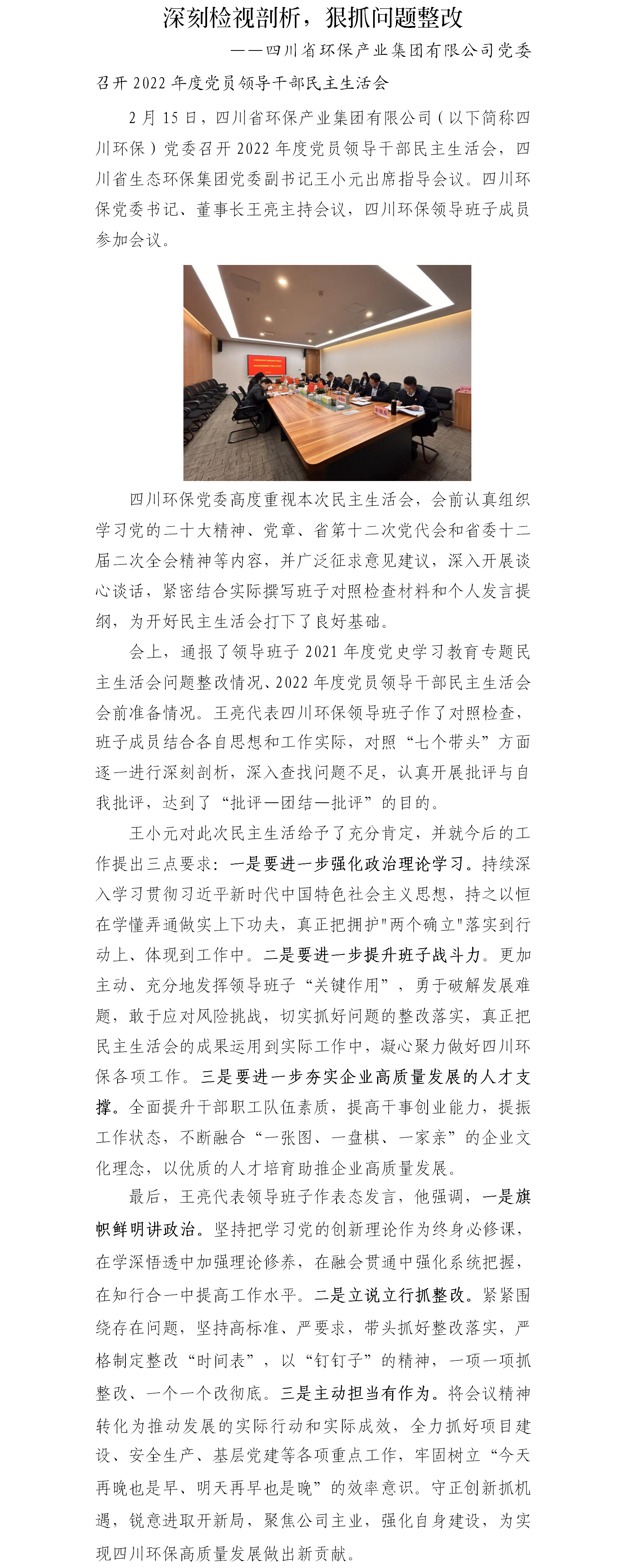 中共南江川长征娱乐开源水务有限公司支部委员会组织召开2022年度党支部组织生活会