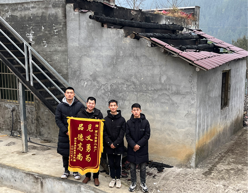 2021年12月28日下午两点左右,南江县第二水厂厂区附近有一处村民在其自建房内烟熏腊肉,不慎失火,恰逢水厂机电维修人员武秉泽一行进行厂区常态化巡查,发现火情,立即启动了厂区应急预案。风随火起,火势蔓延迅速,武秉泽在关键时刻带领厂区职工刘博、张伟和杨浩然3人,携带应急灭火器材奔向失火房屋,历经两个多小时的全力扑救,最终控制了火势,避免了一场灾难的发生。