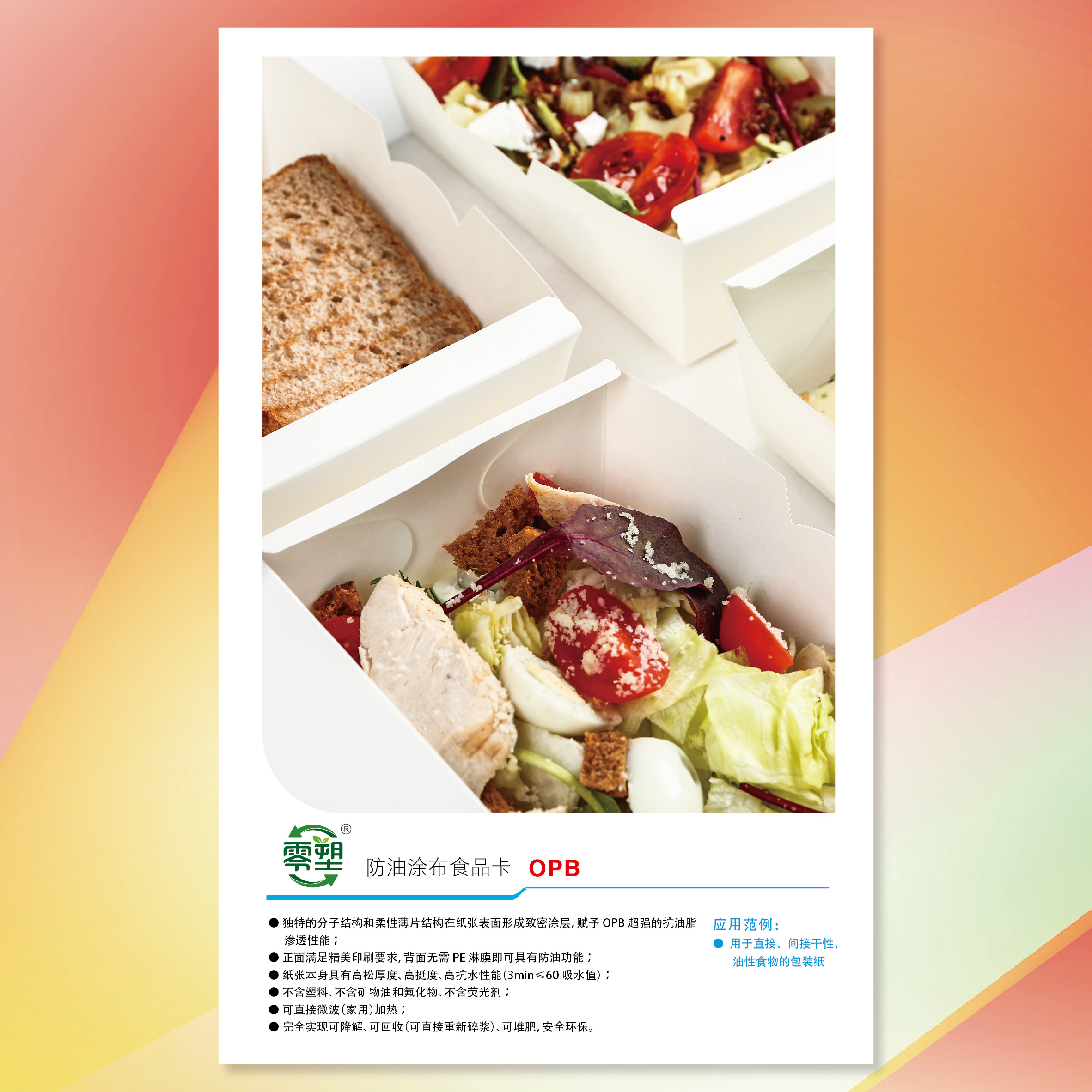 2、正面满足精美印刷要求,背面无需PE淋膜即可具有防油功能;