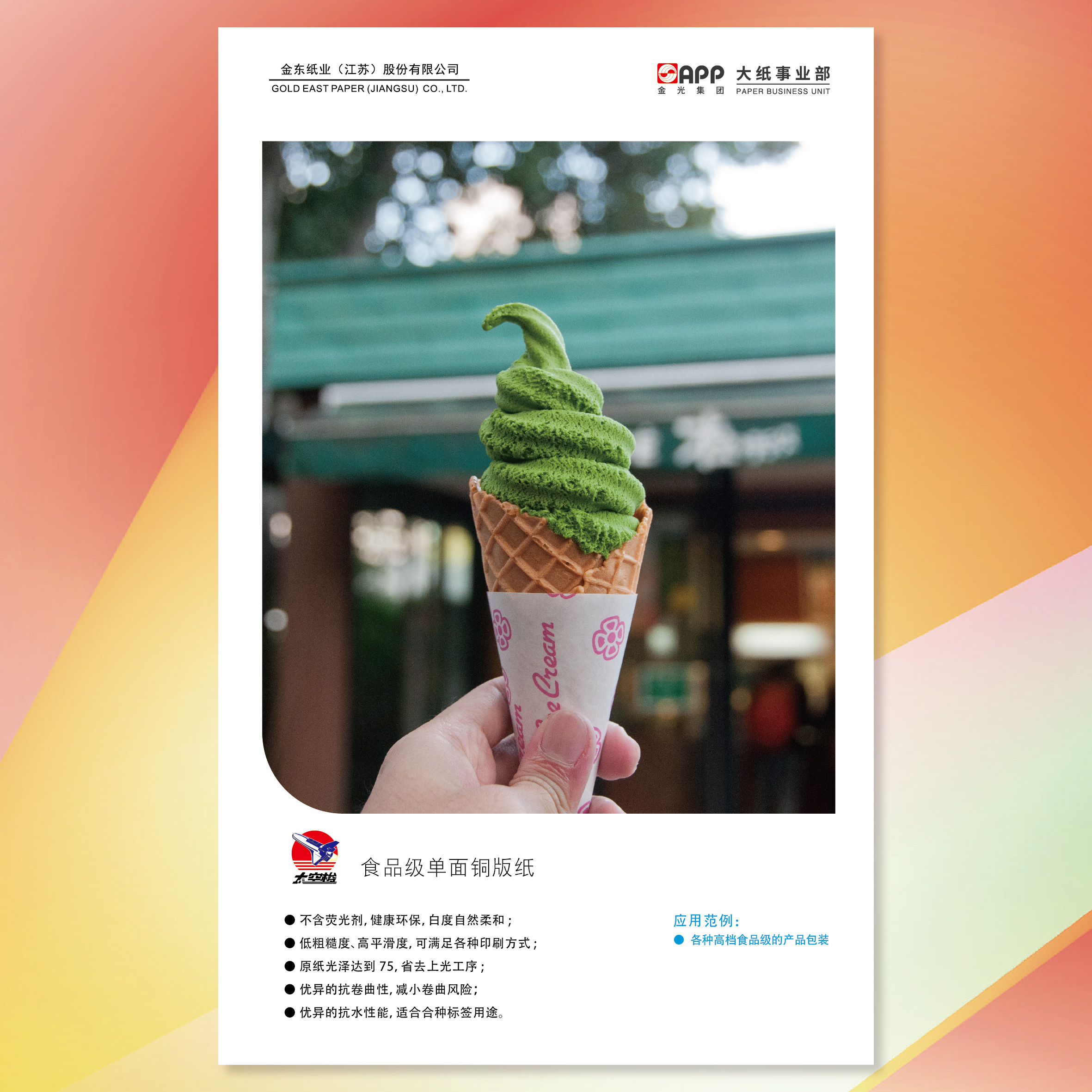 ●不含荧光剂,食品级,可直接接触食品,健康环保。白度自然柔和; ●低粗糙度、高平滑度,可满足各种印刷方式; ●原纸光泽达到75,省去上光工序; ●优异的抗卷曲性,减小卷曲风险; ●优异的抗水性能,适合合种标签用途。